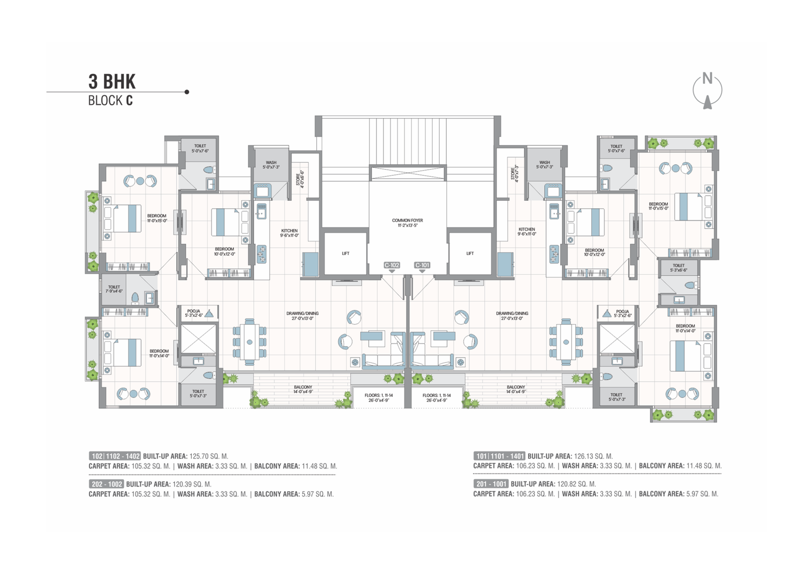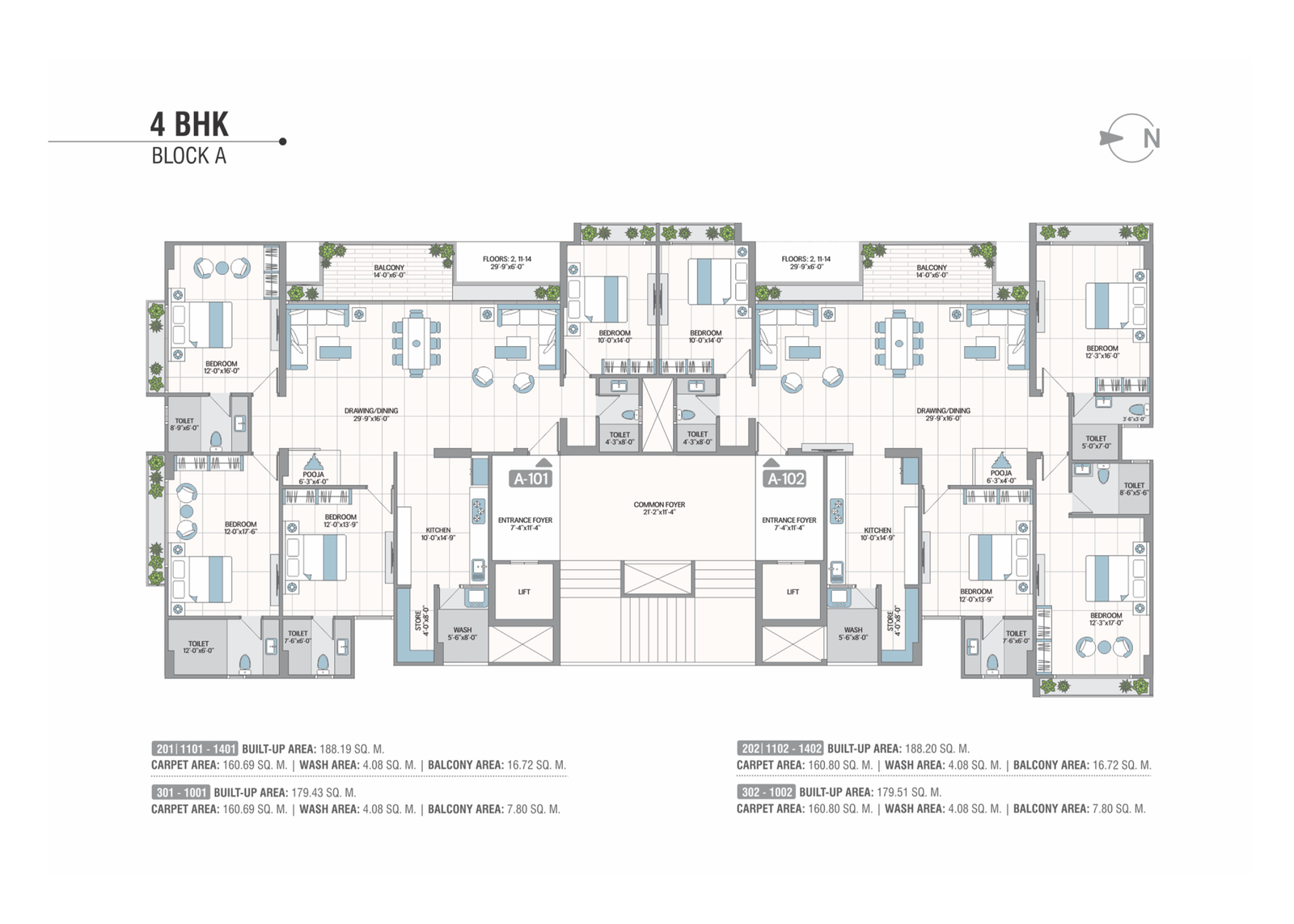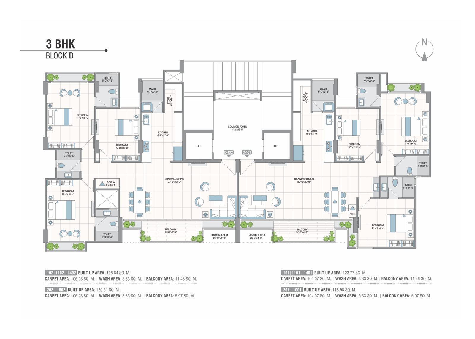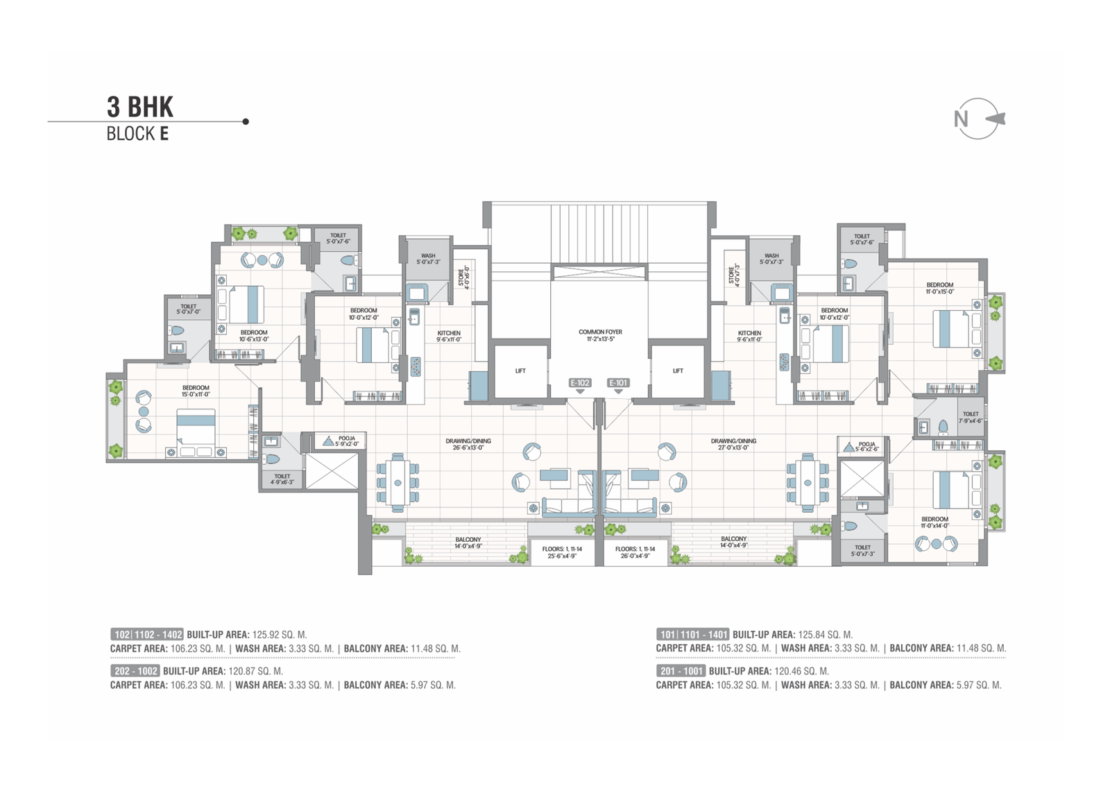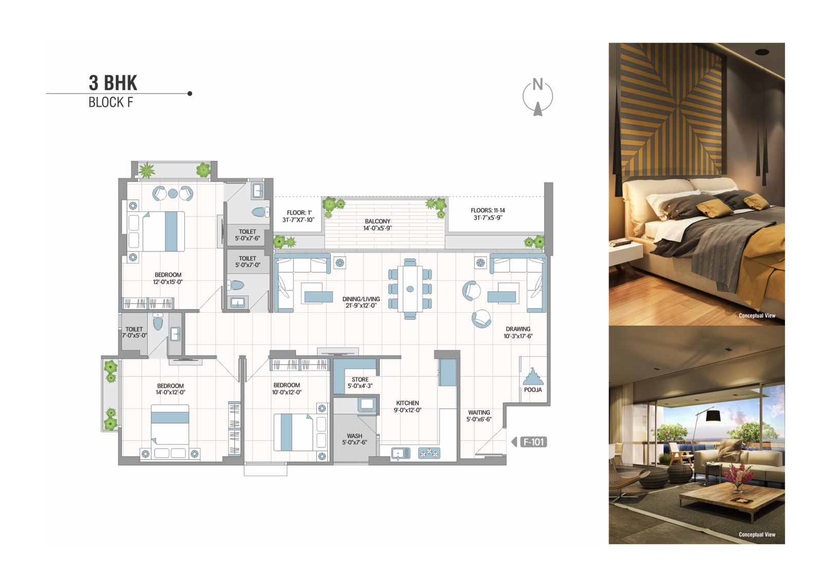 Concealed premium quality copper wiring with branded modular switches and MCB distribution panel. AC points. Provision for broadband, telecom & television.