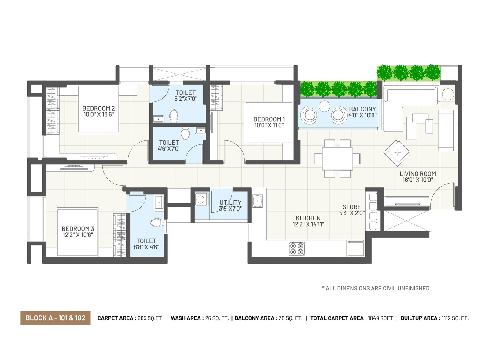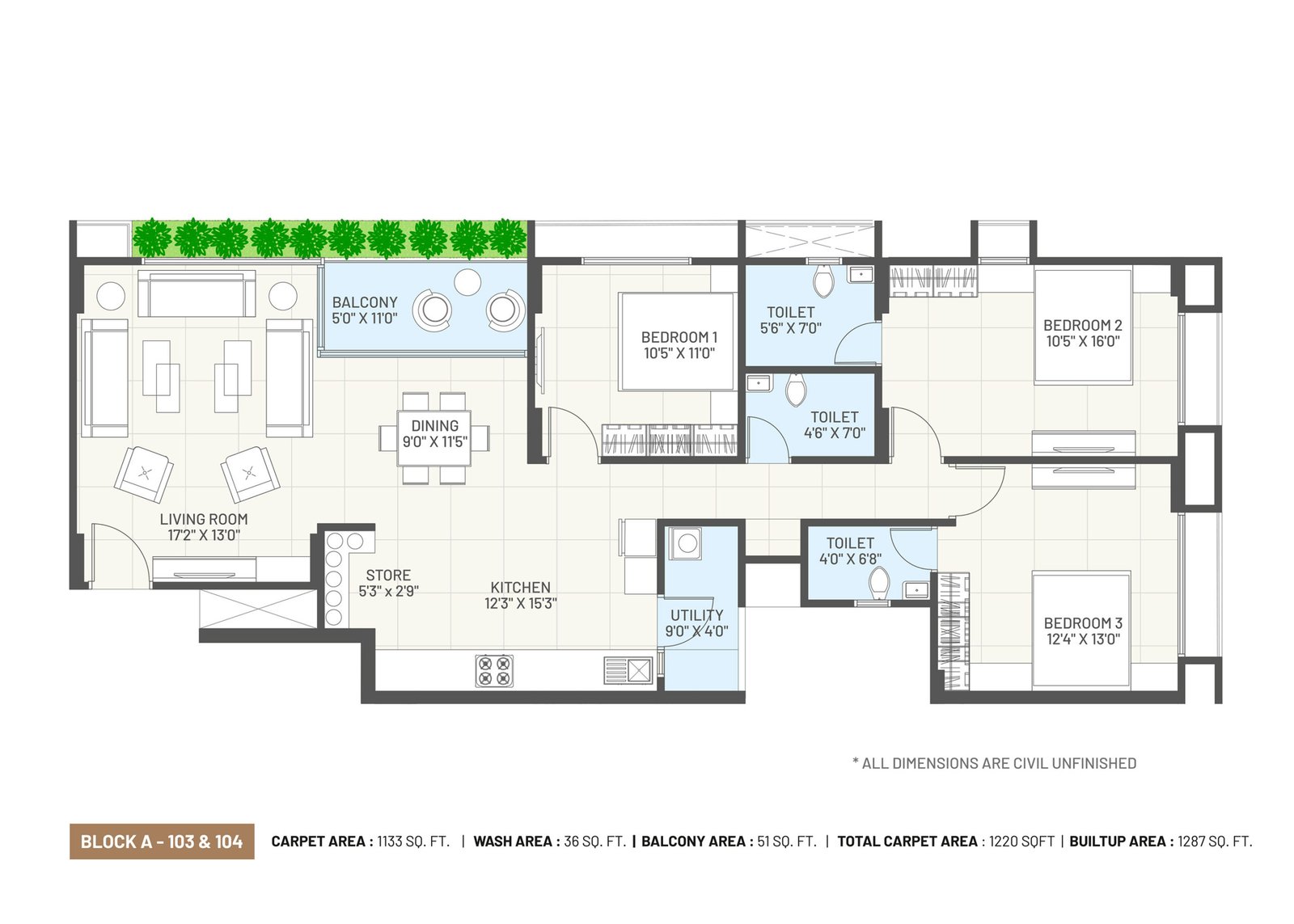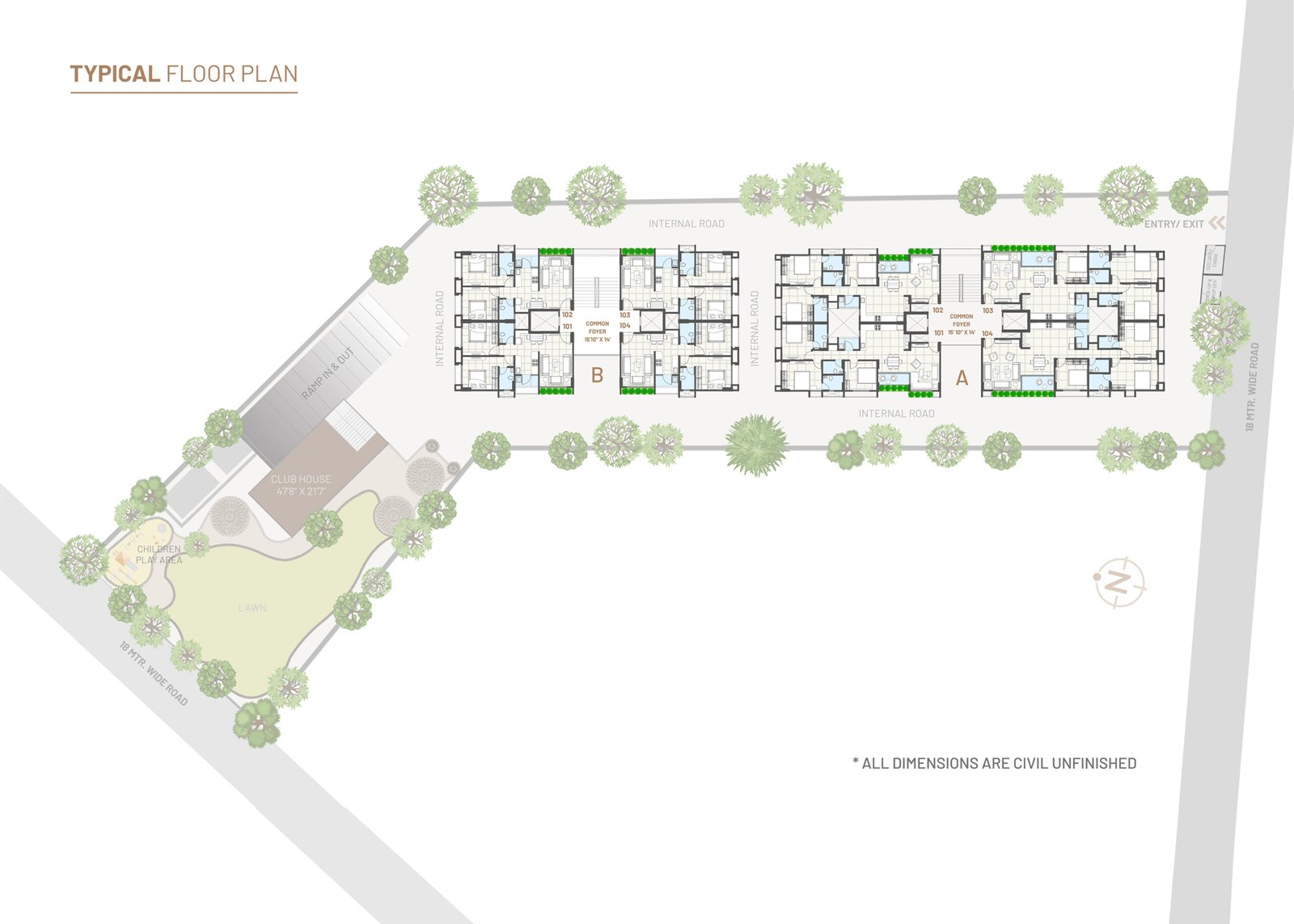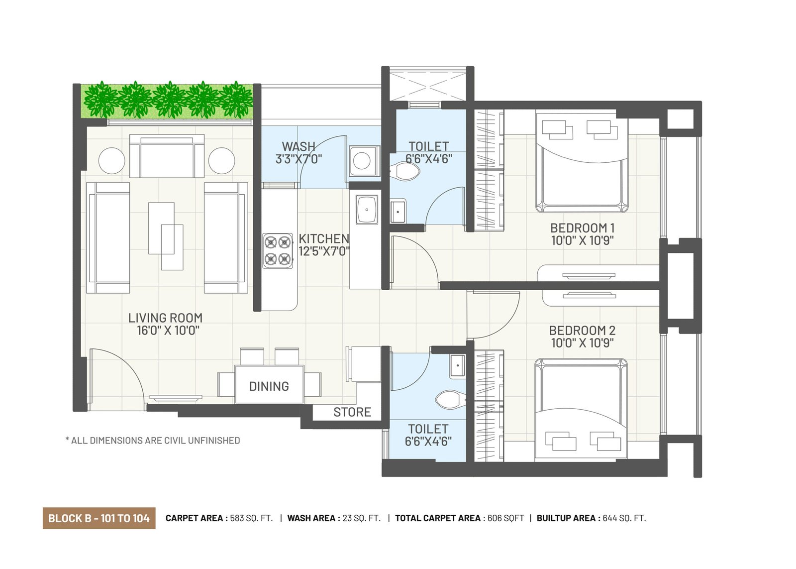 Concealed premium quality copper wiring with branded modular switches and MCB distribution panel. AC points. Provision for broadband, telecom & television.