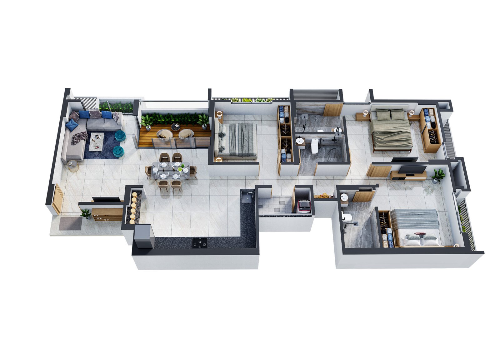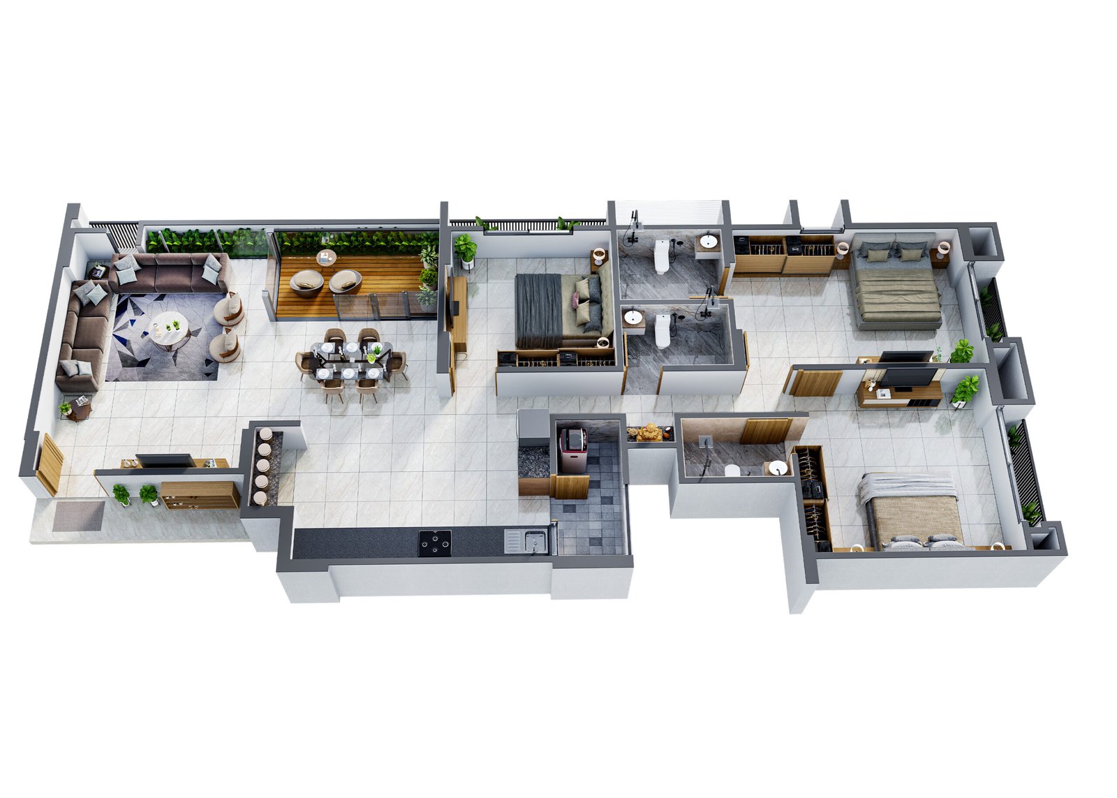800mm x 800mm premium vitrified tiles inside flats.